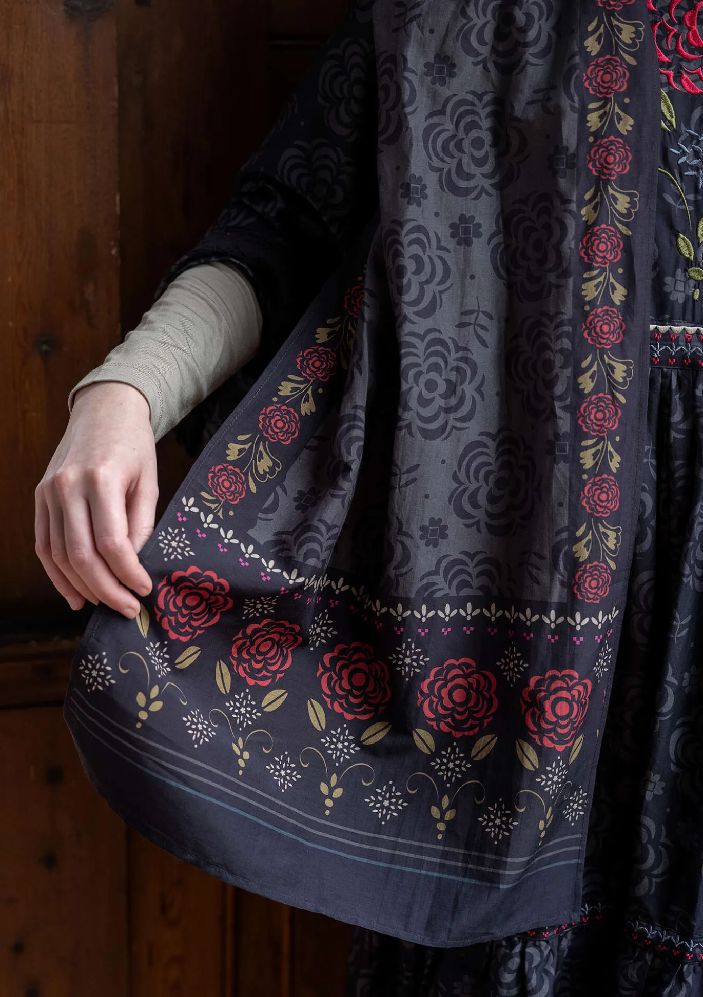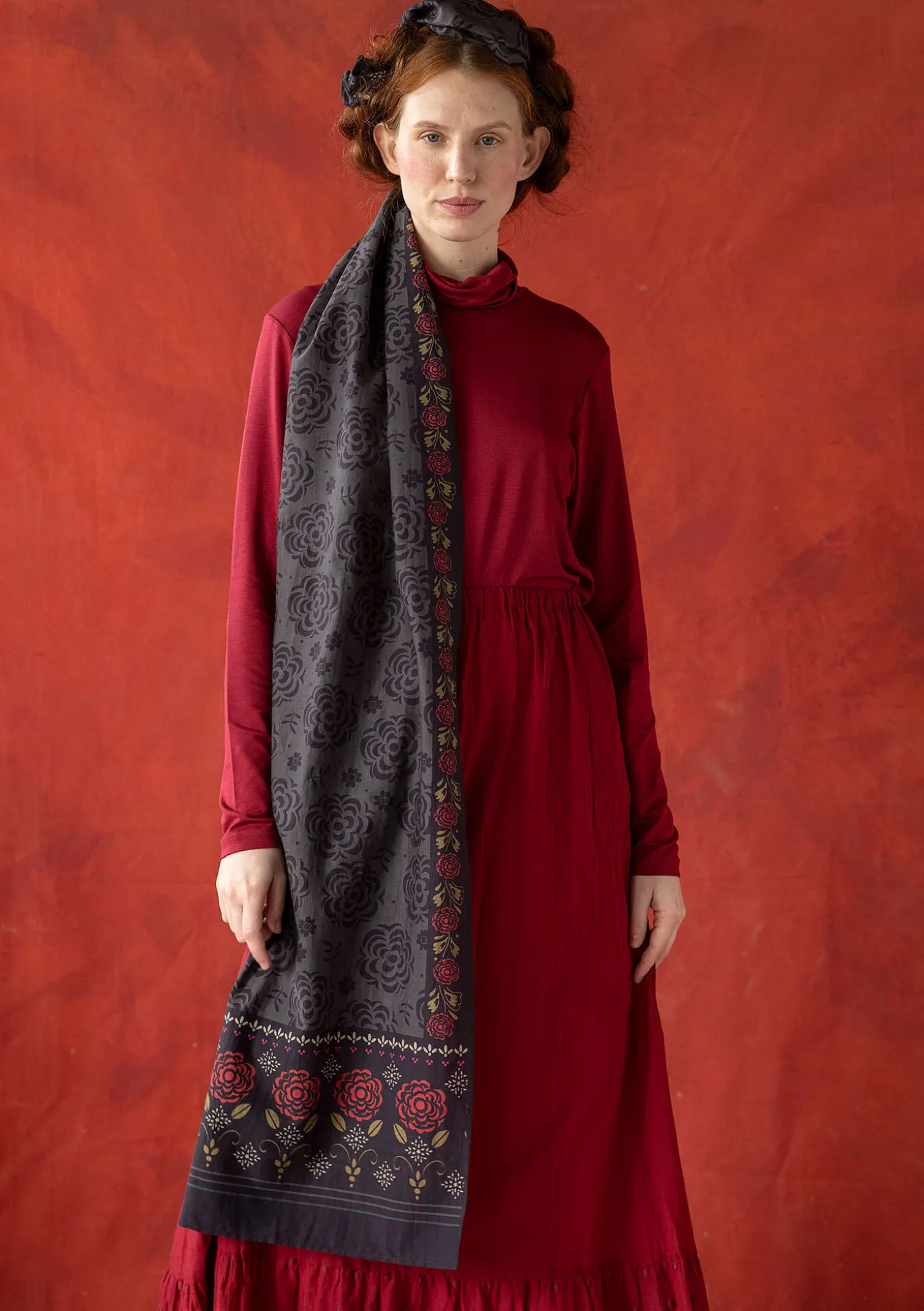 Digipainettu isokokoinen huivi. Kaunis kuvio ja koristeelliset boordit.