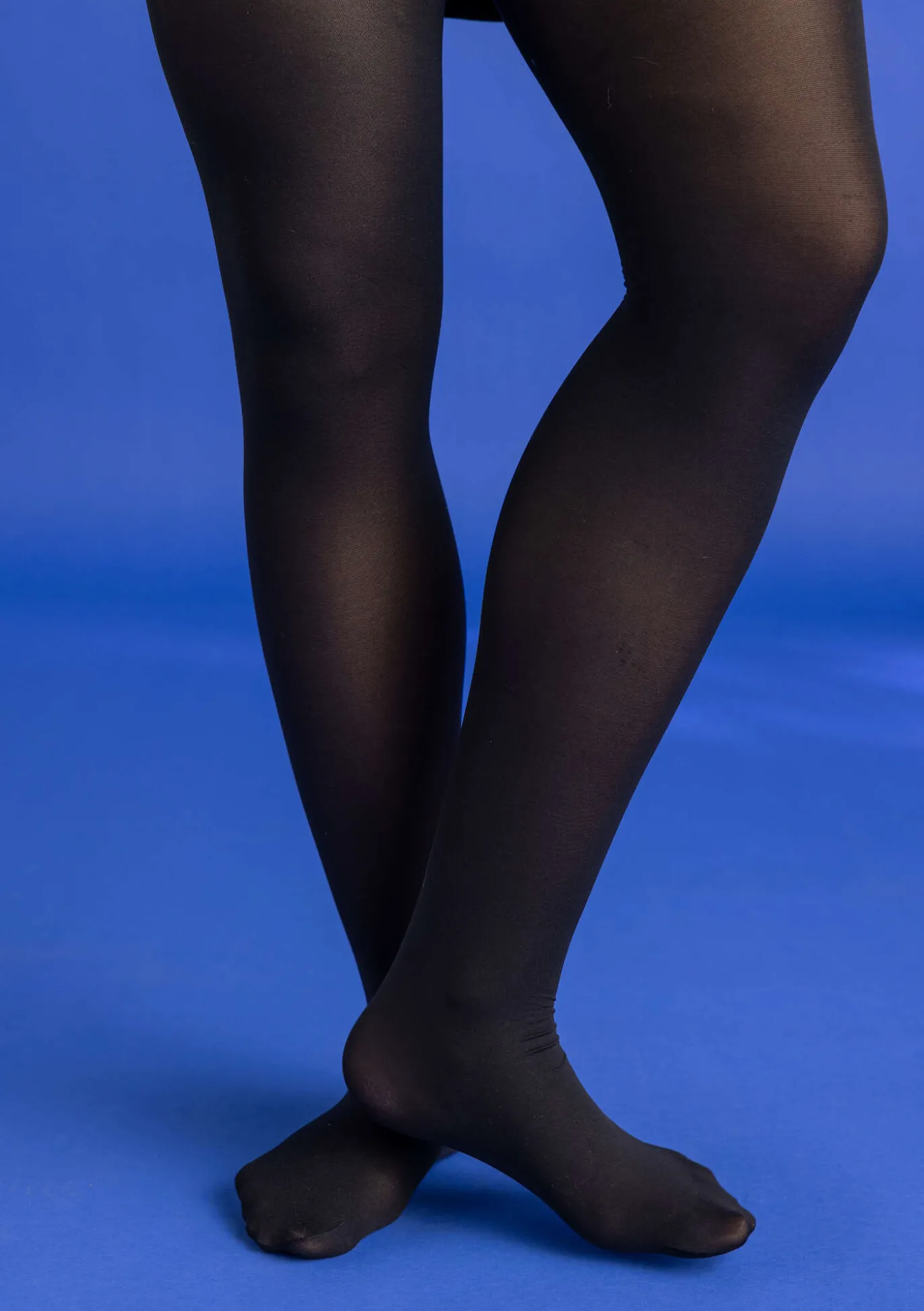 Mukavista yksivärisistä sukkahousuista on valittavana helposti yhdisteltäviä sävyjä. Valmistettu kierrätetyistä kuiduista.