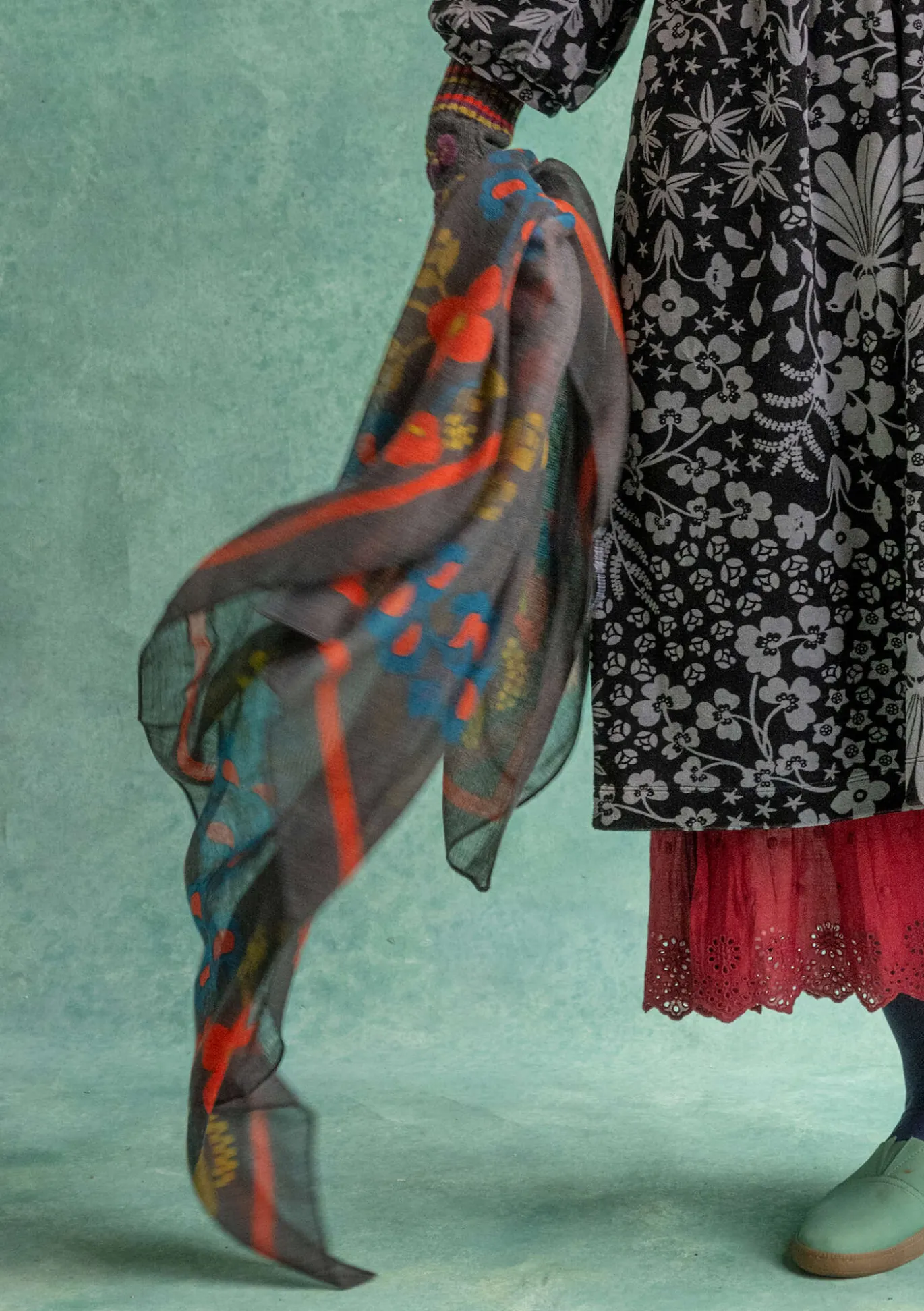 Kaunis neliön muotoinen huivi lämmittää ihanasti. Runsaasti kuvioitu huivi, jossa on aseteltu painokuvio ja reunan ympäri kulkeva boordi.