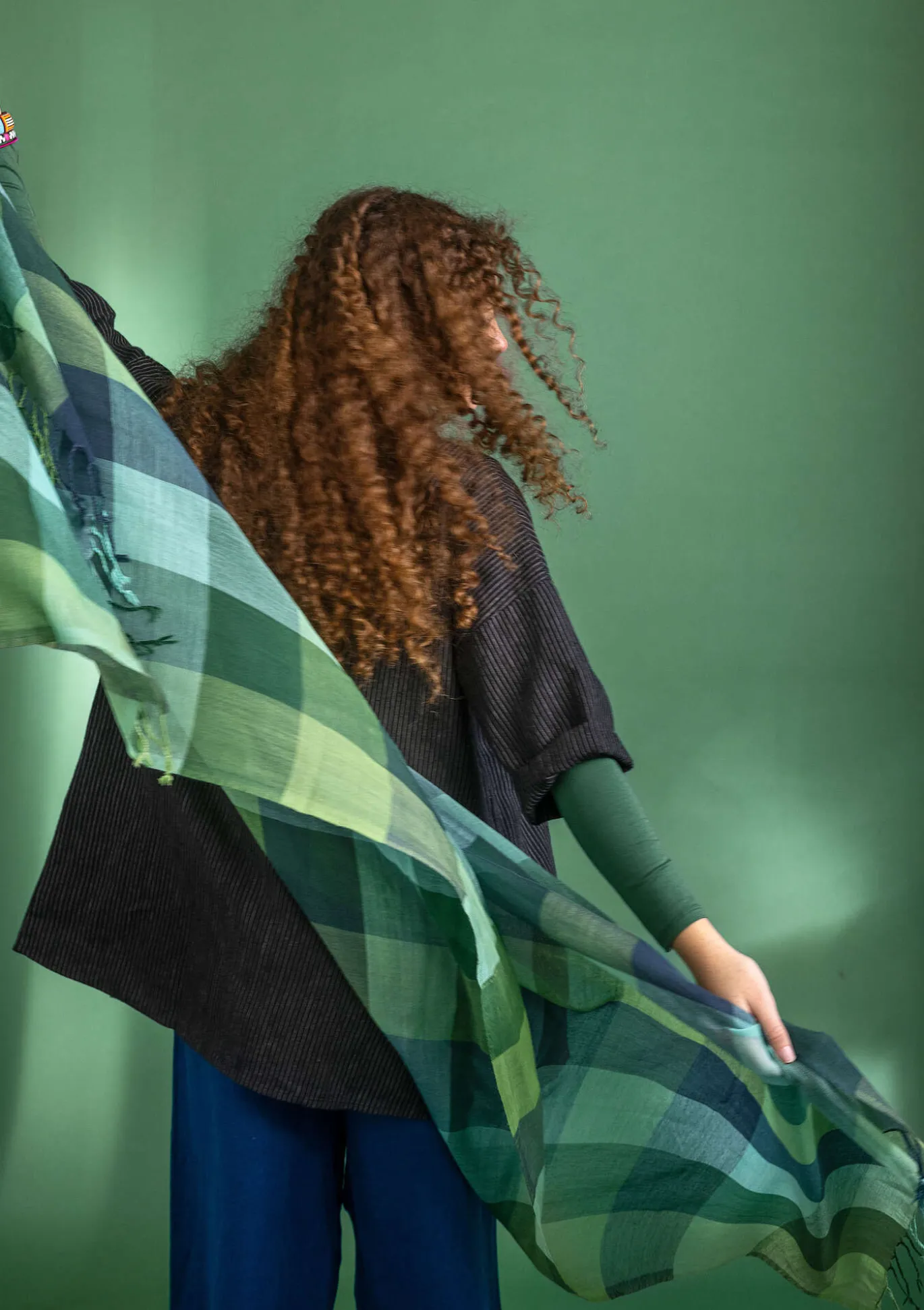 Pehmeä ja lämmin villahuivi. Kuosia somistaa lankavärjätty ruutukuvio, ja valittavana on kauniita väriyhdistelmiä. Huivin päissä hapsut.