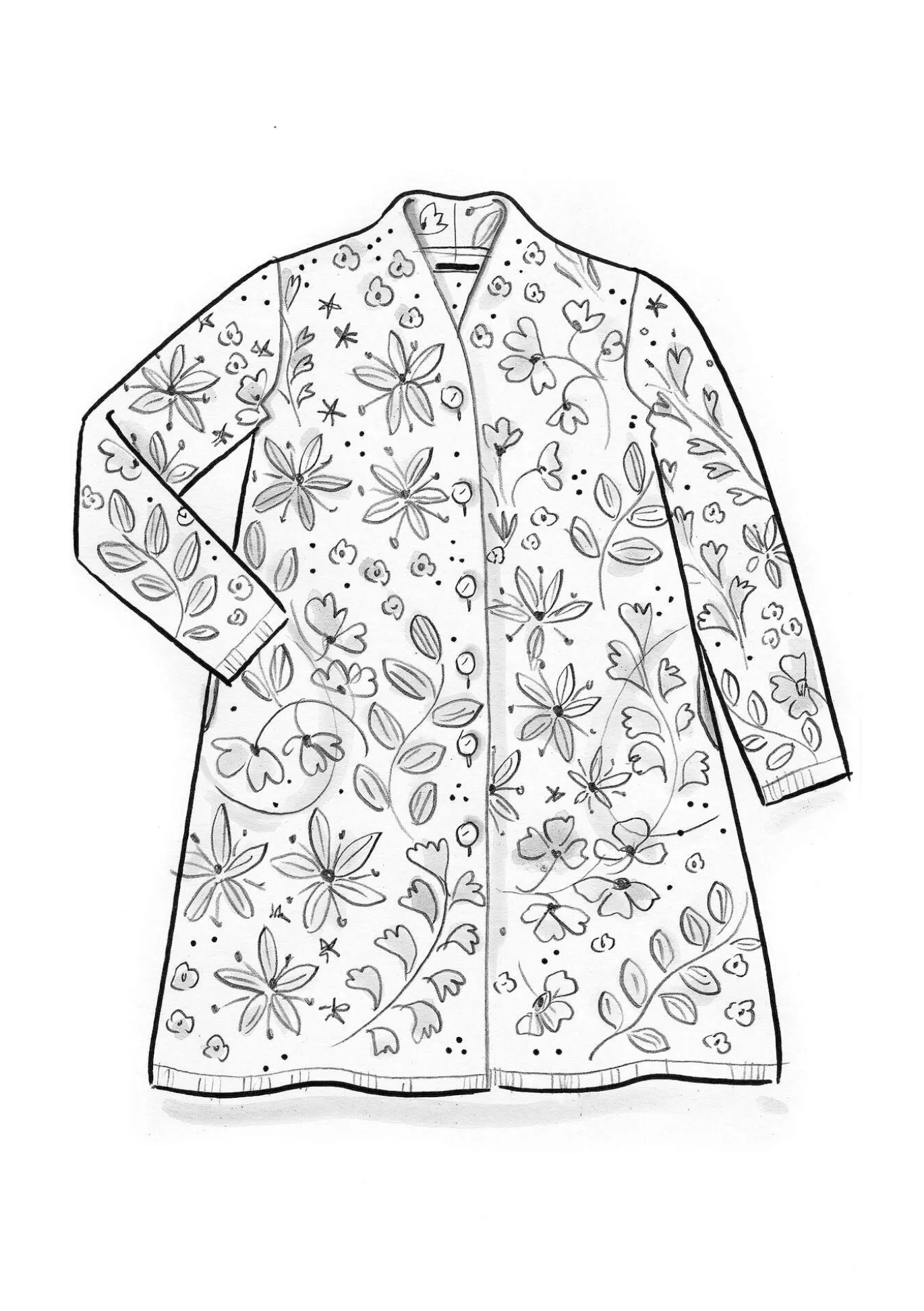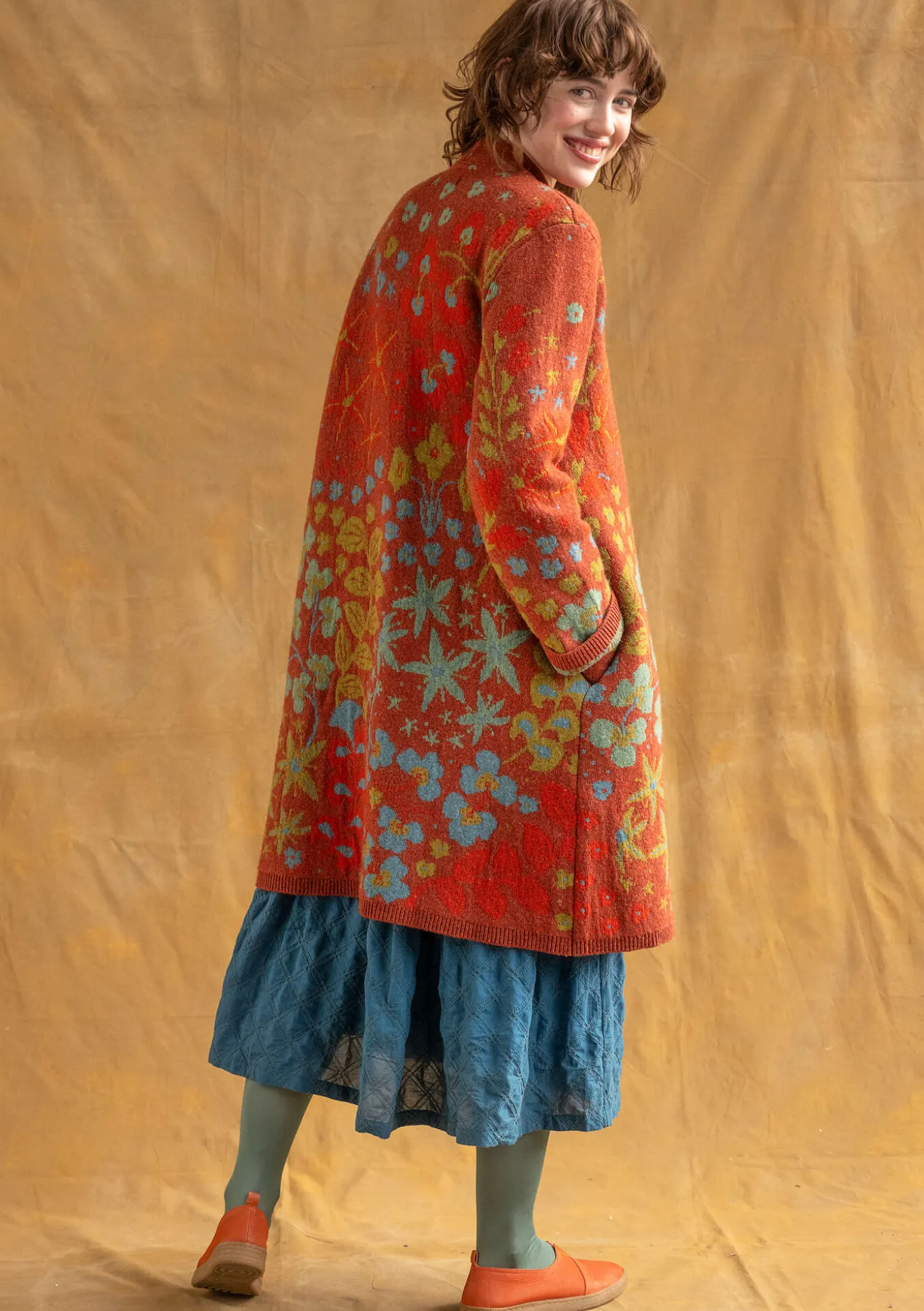 Tässä pitkässä jacquardneuletakissa voit tuntea olosi erityisen hienoksi. Neuletakissa on aseteltu kuvio sekä edessä että takana. Siinä on pitkät hihat, sivutaskut, korkeahko kaulus ja helmiäisnapit.