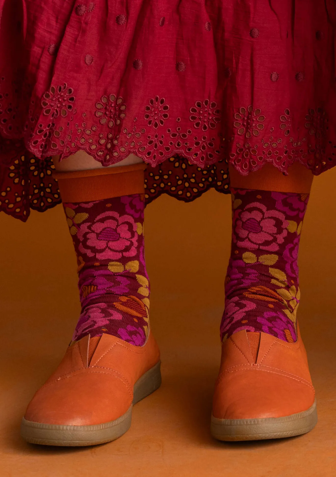Pehmeitä ja mukavia sukkia somistaa kaunis ruusukuvio. Varrensuussa on mukava korostevärinen kiertyvä reuna.