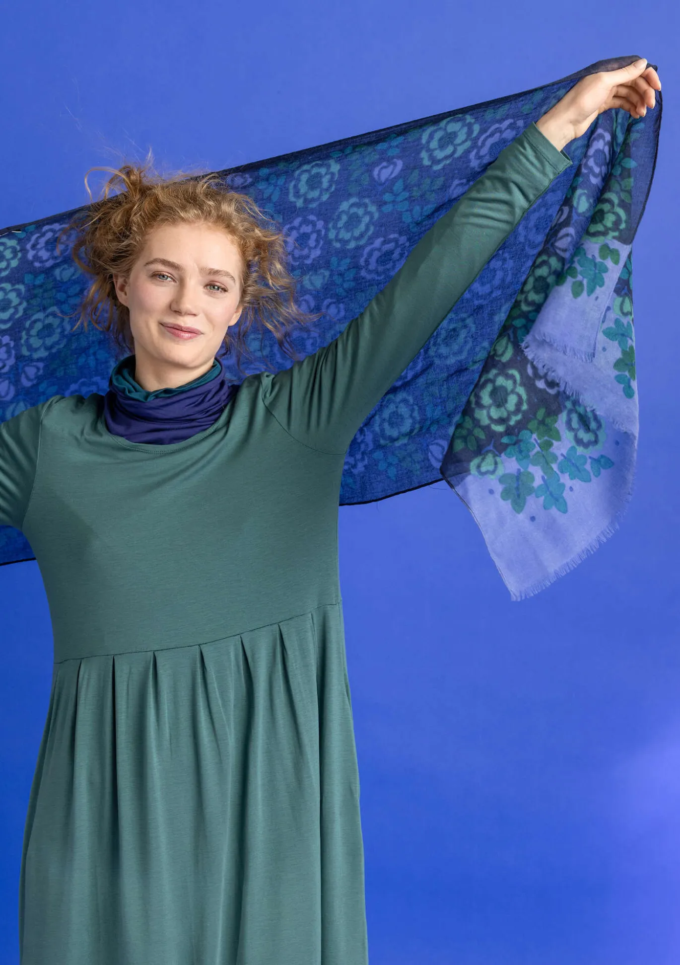 Painokuvioitu huivi pehmeää ja lämmintä villamateriaalia. Kuosia somistaa upea ruusukuvio, joka harvenee ja sekoittuu kauniisti korosteväreihin huivin molemmissa päissä.